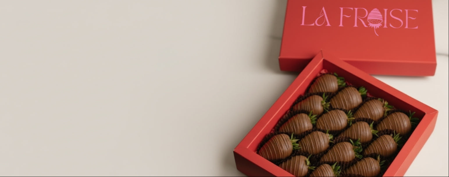 Hand-dipped chocolate covered strawberry boxes, delivered in Dubai.